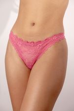 Biquíni fio com frente toda rendada forrada com tule poá para diminuir a transparência. As franjas da renda destacam a cintura frente e a parte de trás. A rendinha estreita é aplicada no contorno da perna emoldurando a calcinha. A parte de trás é toda rendada, sem elásticos. E a rendinha estreita fica aplicada na parte superior. Logo metálico aplicado na parte de trás. Fundinho em algodão 100%.