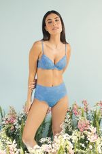Sutiã todo rendado com bojo básico. Alças triplas fininhas na frente com parte de trás em elástico ajustável. Logo metálico aplicado na parte de trás. Fecho com tripla regulagem.
