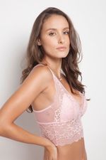 Top em Renda Everyday com bojinho triangular embutido, o que evita a transparência e permite que o top seja usado como roupa em visuais descolados e atuais. A parte de trás é em tule. A base do top em renda dá toda a volta no corpo. As alças ajustáveis com brilho acetinado na parte de trás, argolas e passadores dourados, além do logo metálico aplicado atrás dão o toque final no modelo.