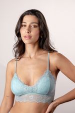 Top todo rendado na parte da frente. As taças formam um decote em V e são forradas com microfibra com suave brilho. O delicado contorno de franja no decote e no cós enriquece a peça. O bojinho é removível deixando a peça super versátil. Com bojinho o top ganha mais forma. Sem bojinho fica mais leve e confortável. A parte de trás é em microfibra acetinada com contorno de rendinha estreita na parte de cima. As alcinhas são fininhas e ficam um charme. O ajuste está na parte de trás. Argolas e passadores dourados. Logo metálico aplicado na parte de trás.